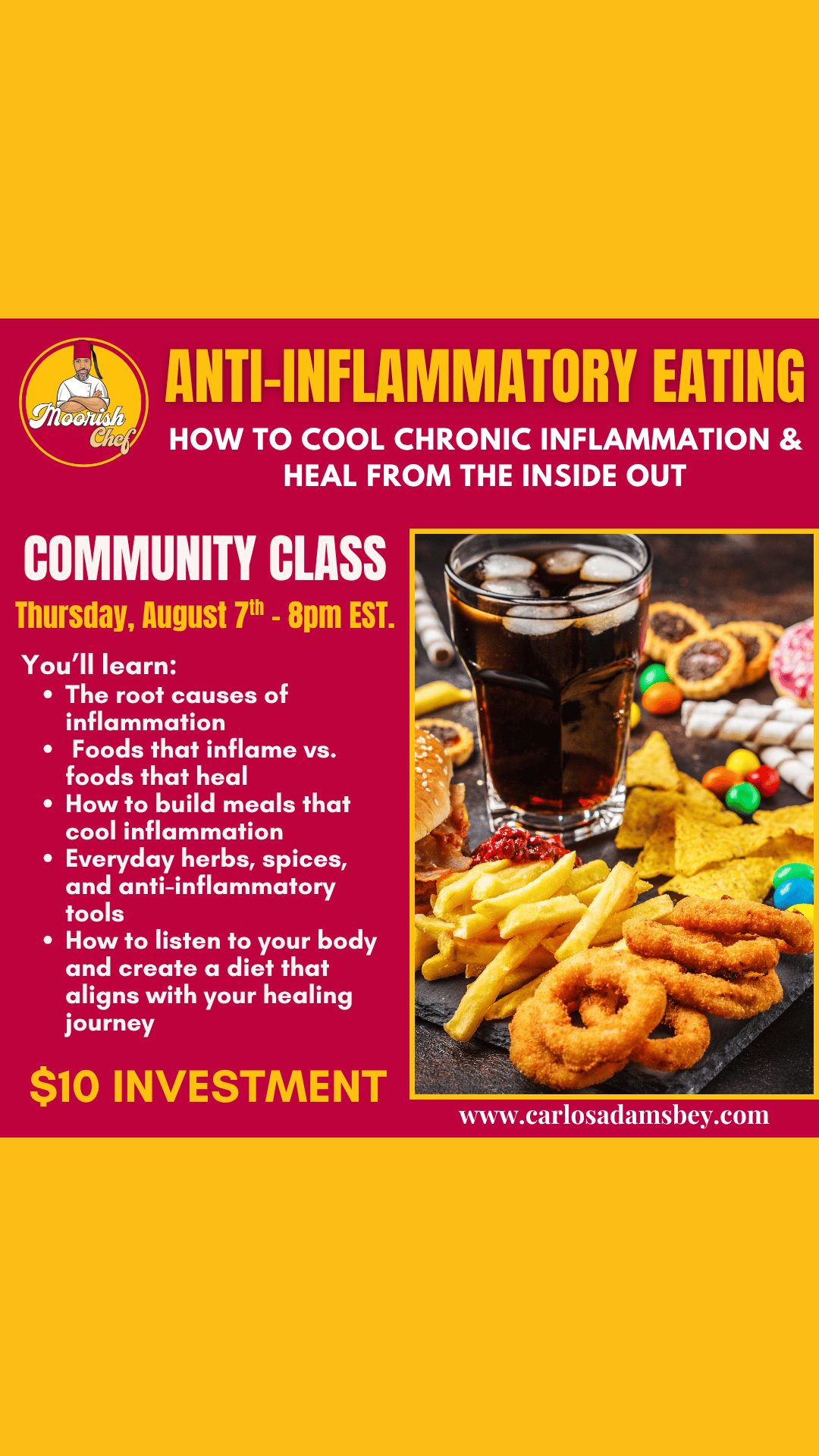 In this eye-opening class, holistic health practitioner and bestselling author Carlos Adams-Bey breaks down what inflammation really is, how it affects your body on a cellular level, and how simple dietary changes can radically transform your health.